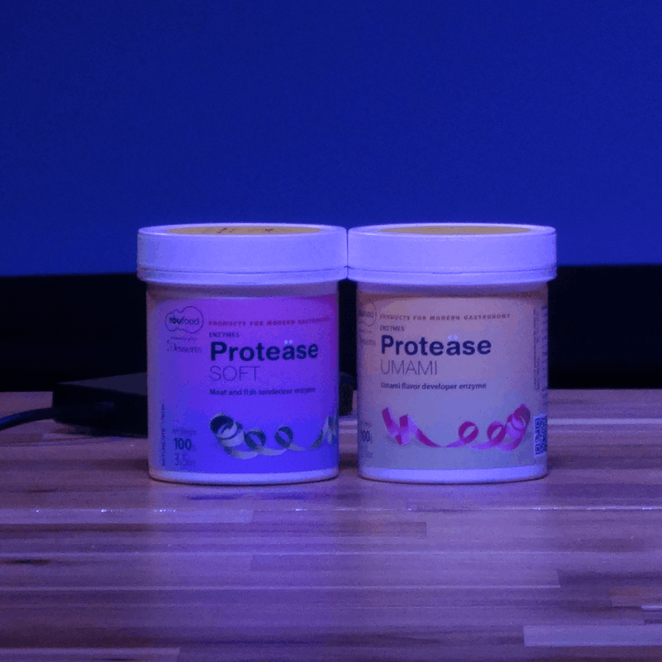 También con una cepa del hongo Aspergillus oryzae se obtiene la enzima proteasa en polvo, como la que nos presenta la empresa Töufood. Las enzimas son un organismo vivo, por lo que son muy seguras y estables, y hay que conocerlas bien para emplear la más adecuada en cada ocasión. En el caso del garum la enzima principal será la proteasa en polvo, con la que se obtienen resultados espectaculares.