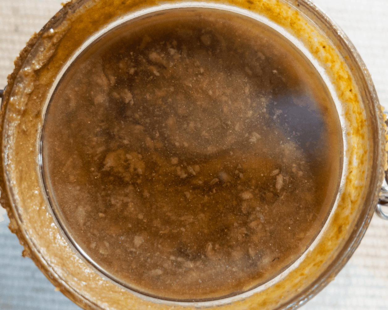 Pasados unos días observamos que se forma en la parte superior una pequeña película que parece un poso graso. No huele mal ni tiene mal aspecto, simplemente es una pequeña capa finísima como de grasa. Lo colamos pero al día siguiente vuelve a aparecer.