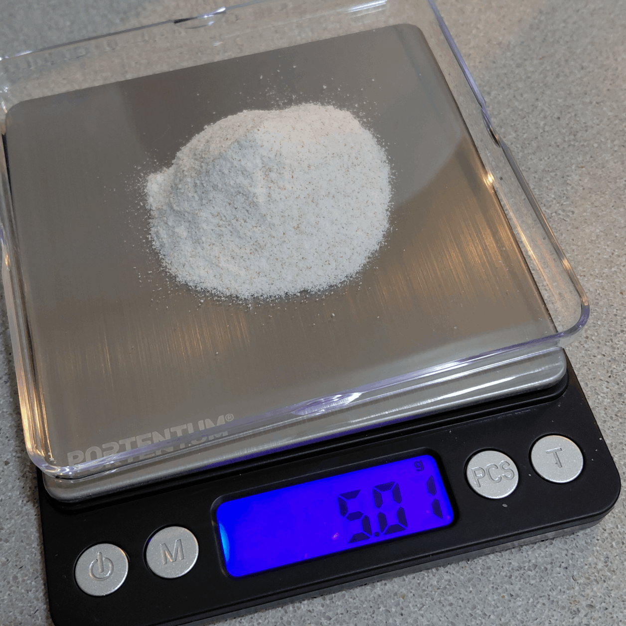 b) Se mezcla con cierta cantidad de agua, sal y proteasa (hay que seguir las instrucciones del fabricante para las cantidades) y se tritura