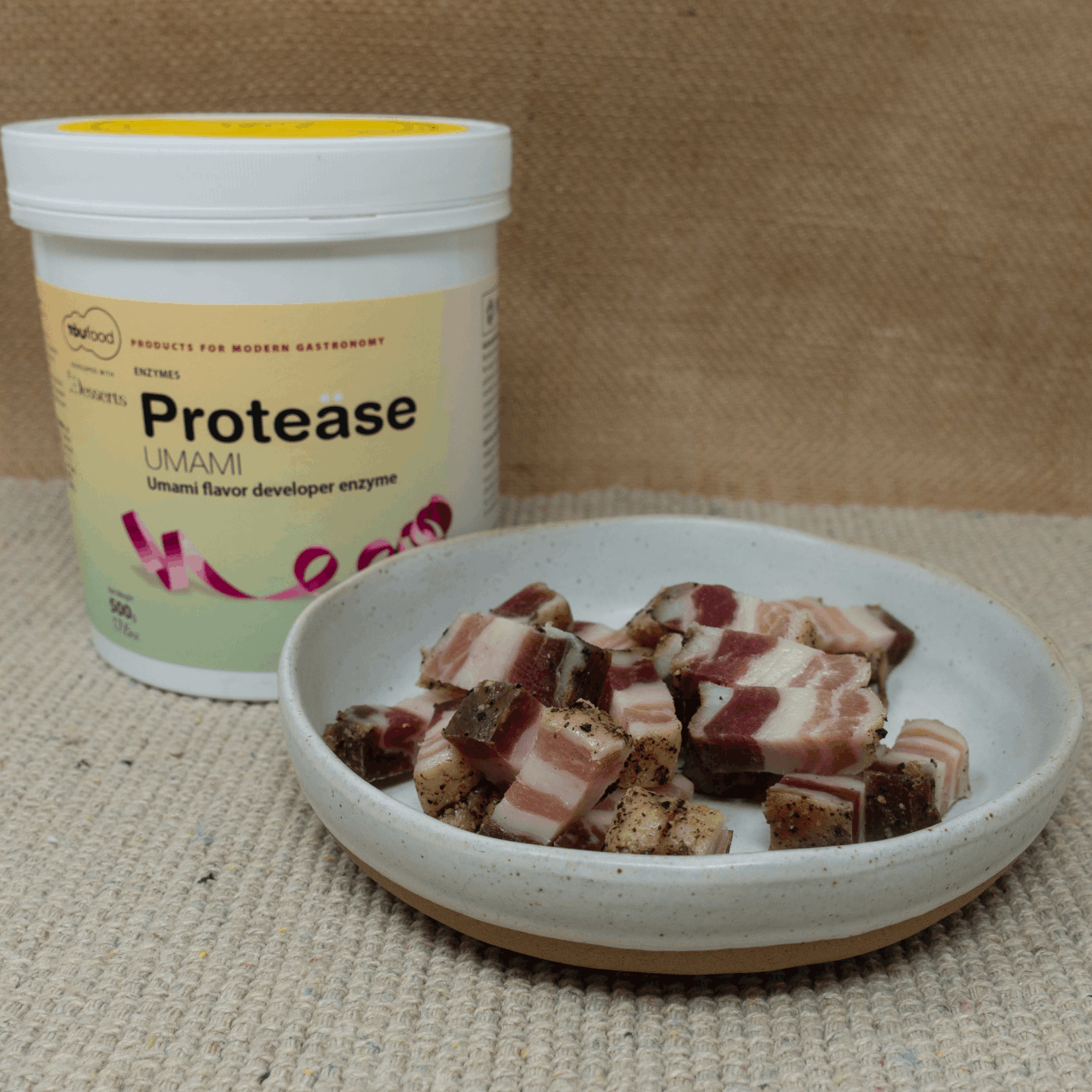 Cabe decir que, a diferencia del tradicional, los requerimientos para elaborar garum con proteasas son mucho mayores. Se necesita aplicar la técnica sous-vide, es decir, se necesita calentar el producto en una bolsa al vacío durante mucho tiempo a una temperatura estable y controlada. Por tanto es necesaria una máquina selladora al vacío y una máquina sous-vide. El activador que usamos para conseguir el garum es la proteäse umami de Töufood.
