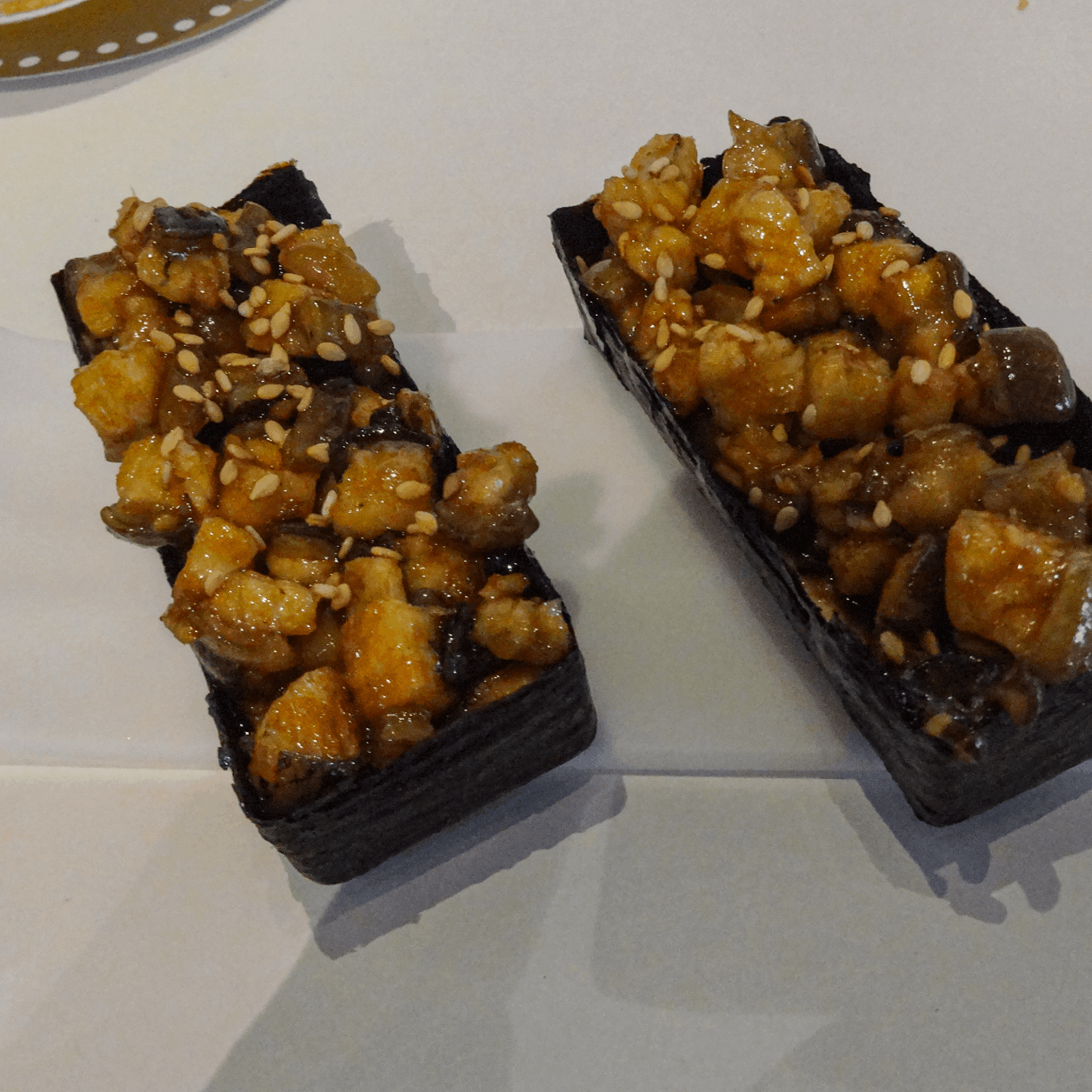 El inconveniente es que es muy delicado y hay que controlar mucho la temperatura, sobre todo evitar que no haya picos de calor que hagan inestable el producto. Nos enseña una de sus pruebas ‘fallidas’, un garum hecho con los recortes de la anguila -justo lo que no utiliza para la Tartaleta de nori, foie gras & anguila que sirve en el restaurante-. Preparó el garum en plena ola de calor y lo subió al almacén, donde quizá hacía aún más calor.